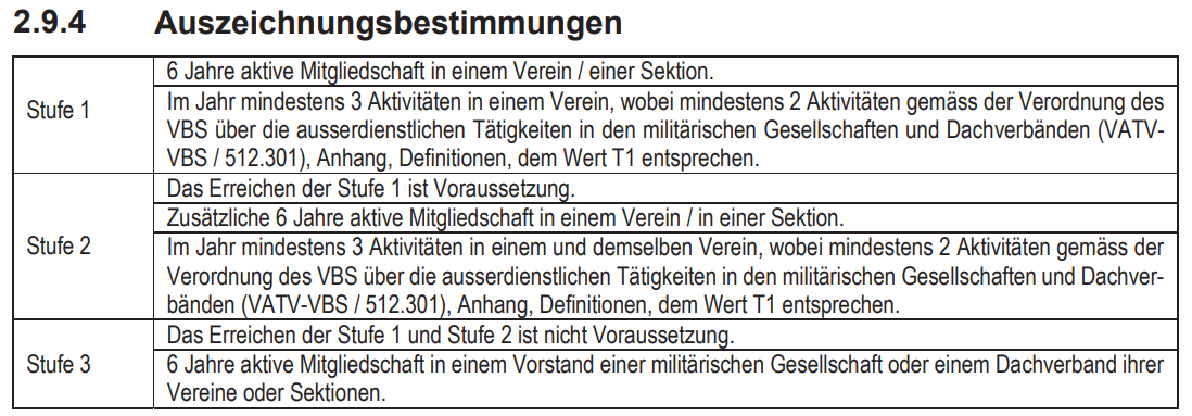 Seit dem 1. Januar 2021 ist es möglich , Auszeichnungen für Ausserdienstliche Tätigkeiten zu beantragen.