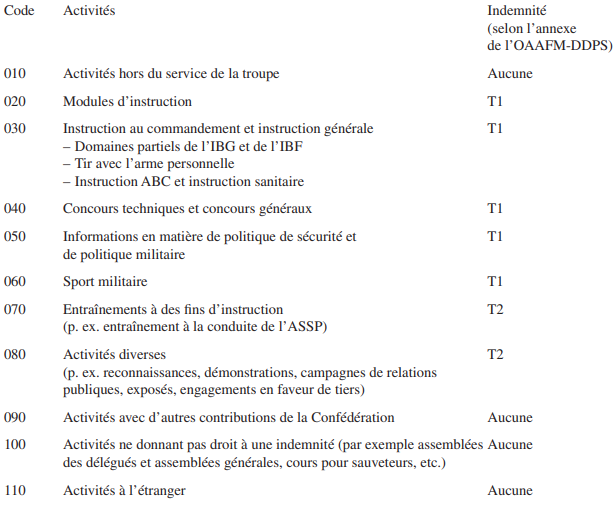 Les activités définies sous les codes 90, 100 et 110 ne peuvent pas être prises en compte.