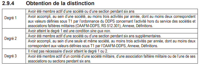 Les activités prises en compte pour l’obtention des distinctions doivent obligatoirement être annoncées et approuvées par l’Armée.